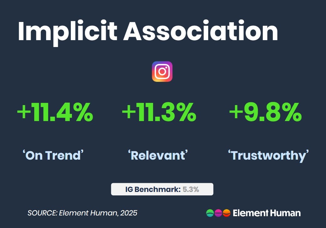 Emotional reactions are often tied to the creation of long term memory associations for the brand involved. In this campaign, the key associations created were ‘On Trend’ and ‘Relevant’, and ‘Trust’ also got a boost for good measure.